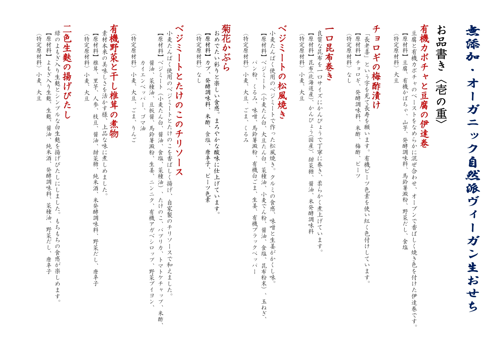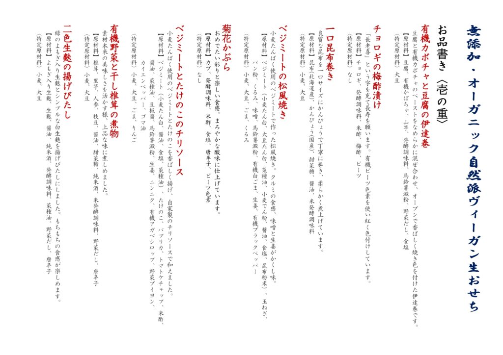おせち料理「ヴィーガン生おせち 2段重(18品)」お品書きの記載不足に関するお詫びと訂正